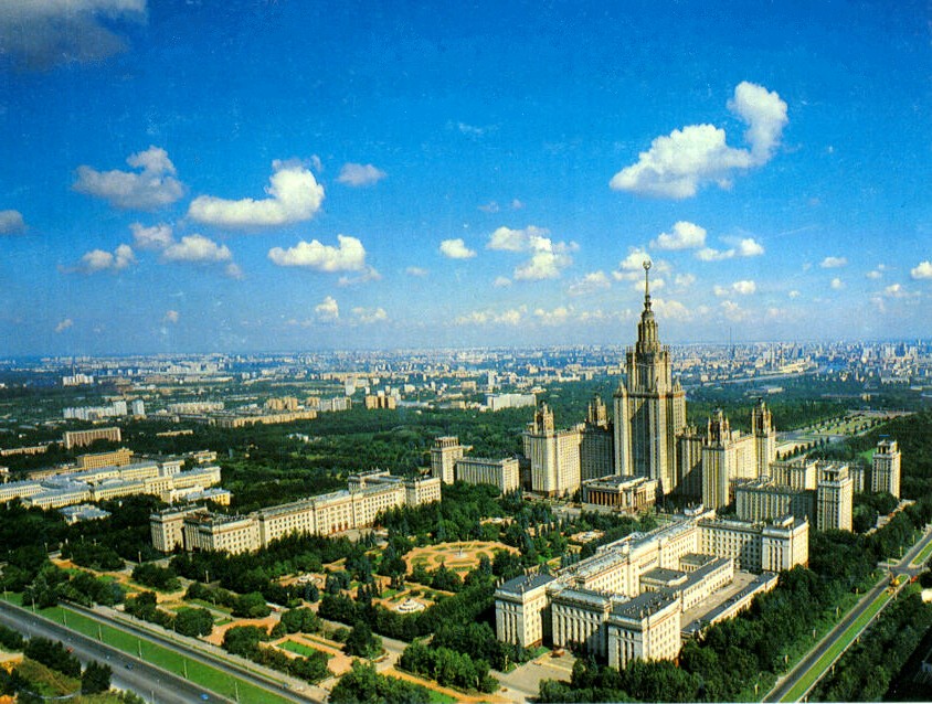 Department of Mathematics and Mechanics occupies floors 12-16 in the middle of the main building.